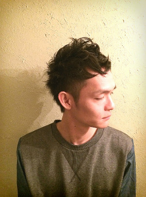 両サイドをハチあたりまで刈上げたツーブロックスタイル。トップは適度に毛量を残して動きが出やすいようにデザイン。